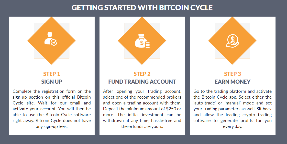 Bitcoin Cycle is not just an automated trading platform. Instead, it is supported by experienced brokers. These brokers have a wealth of experience in trading and they monitor manually the automated trades that take place on Bitcoin Cycle.