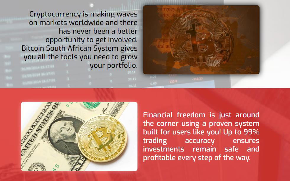 Bitcoin South African system is a reliable platform committed to making trading in cryptocurrency easy and secure. It offers stability and profitability in one place and amidst a plethora of the latest technology in fintech and strict security protocols. The name of the app, Bitcoin South African system is a reference to its aim of opening your treasure to ensure that you can use it in a safe way and with confidence.