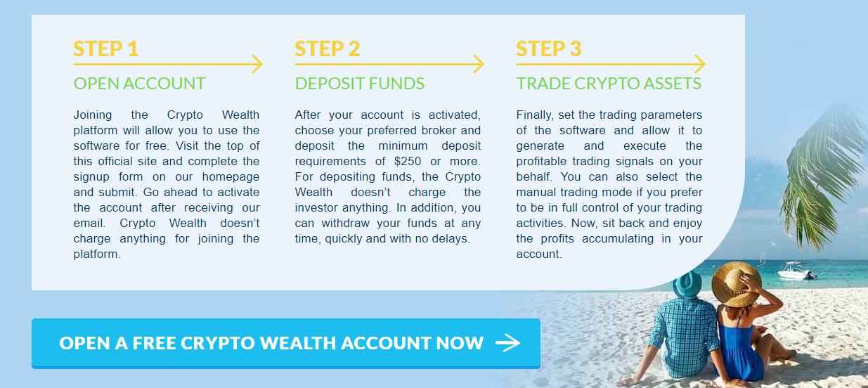 Whatever the market is performing regardless of market conditions, no matter what the market is doing, the Bitcoin Wealth platform makes informed choices to ensure you’re always making money. Since trading happens completely automatically, there is no need for any research or analysis in order to place an investment. All you need to do is open and close the trade for the day of the week.
