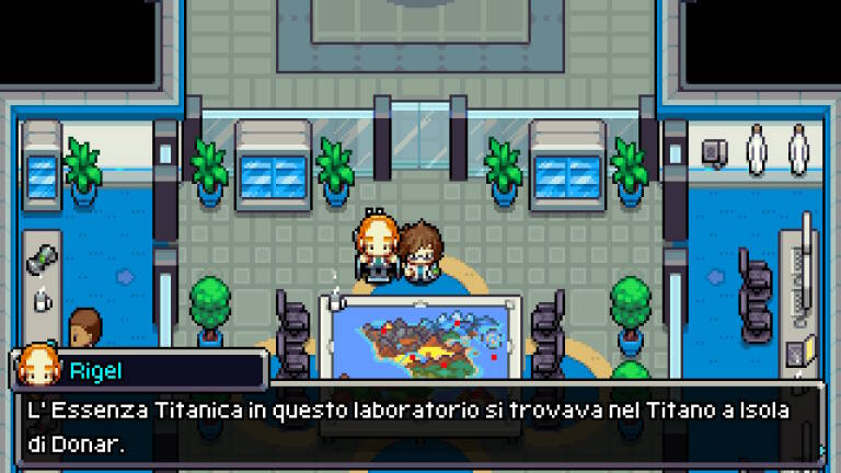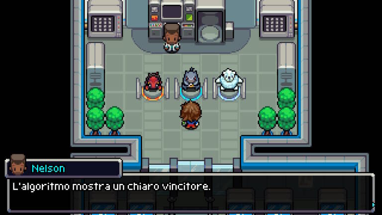 Once we reach the research center, we will receive some important things for our adventure: a glove that allows us to use skills (which we could call MN) and our first Coromon, which we can choose between three alternative creatures. In short, you will have understood: Coromon fully incorporates the Pokémon style also on the narrative level. We even have a team of villains, a bestiary to complete by capturing creatures, and so on.