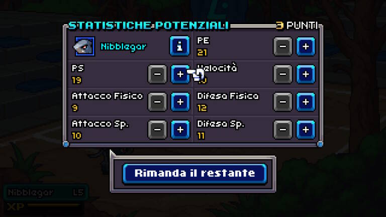 From time to time, however, we will be called upon to intervene personally in the process. This means that we can distribute as we please extra points to be awarded to the different specifications of the Coromon in question. It may seem like a minor detail, but the implications are multiple, because this gives you greater strategic control over the growth of your Coromons.