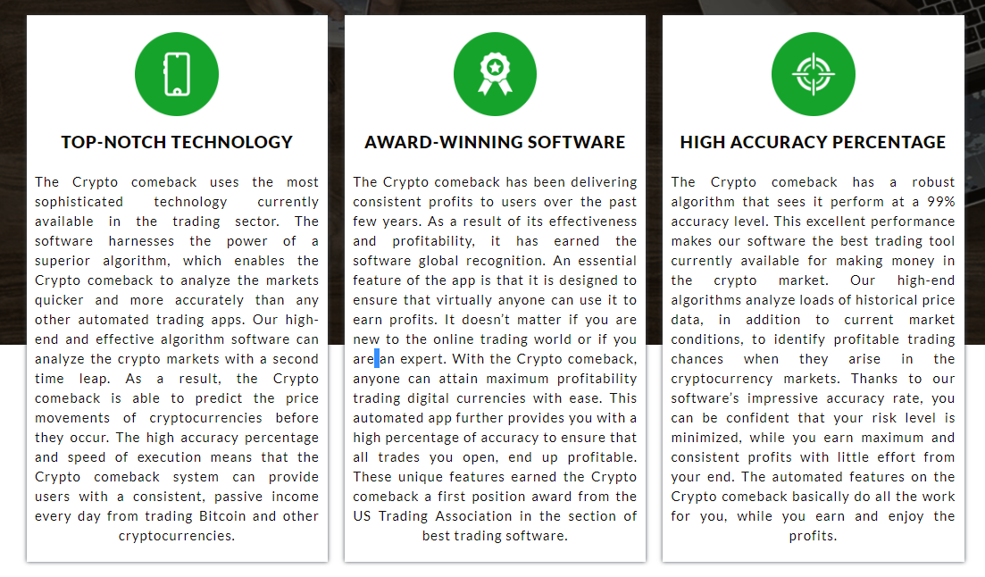 The technology of Crypto Comeback Pro helps create a wealth of trading tools as it assists them in making profitable trades.